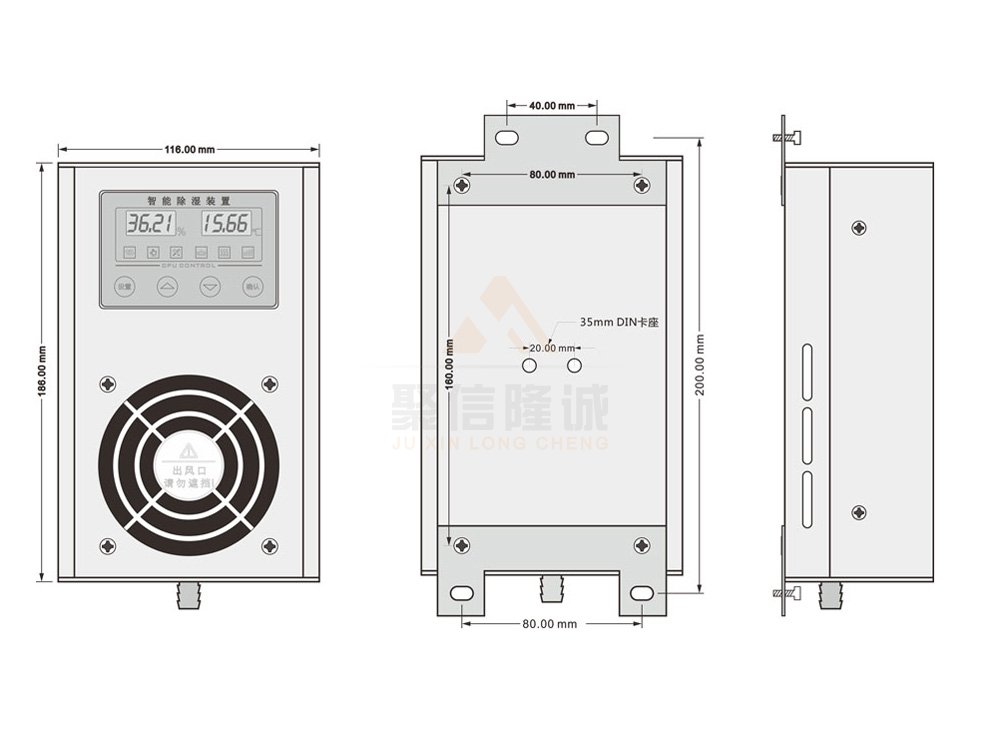 3、除濕風(fēng)道主動引凝、排出氣體加熱降濕,有效達(dá)到了對電氣柜密閉空間防潮除濕的綜合治理;